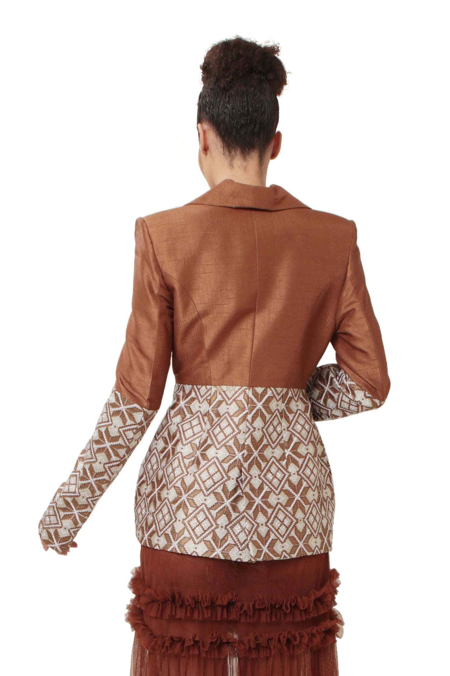 Embroidered brown hourglass blazer in sustained jacquard from Varanasi